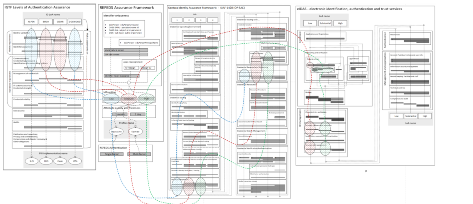 - recommendations for eResearch-centric policy and assurances – this will cover the AARC guidelines on assurance to complement: the REFEDS RAF specifications (the webinar is planned for 13 May at 15:00 CEST); the work to ‘untangle assurances’ (see picture below); the AARC AUP (which is now a WISE document); and the example on how to use it.